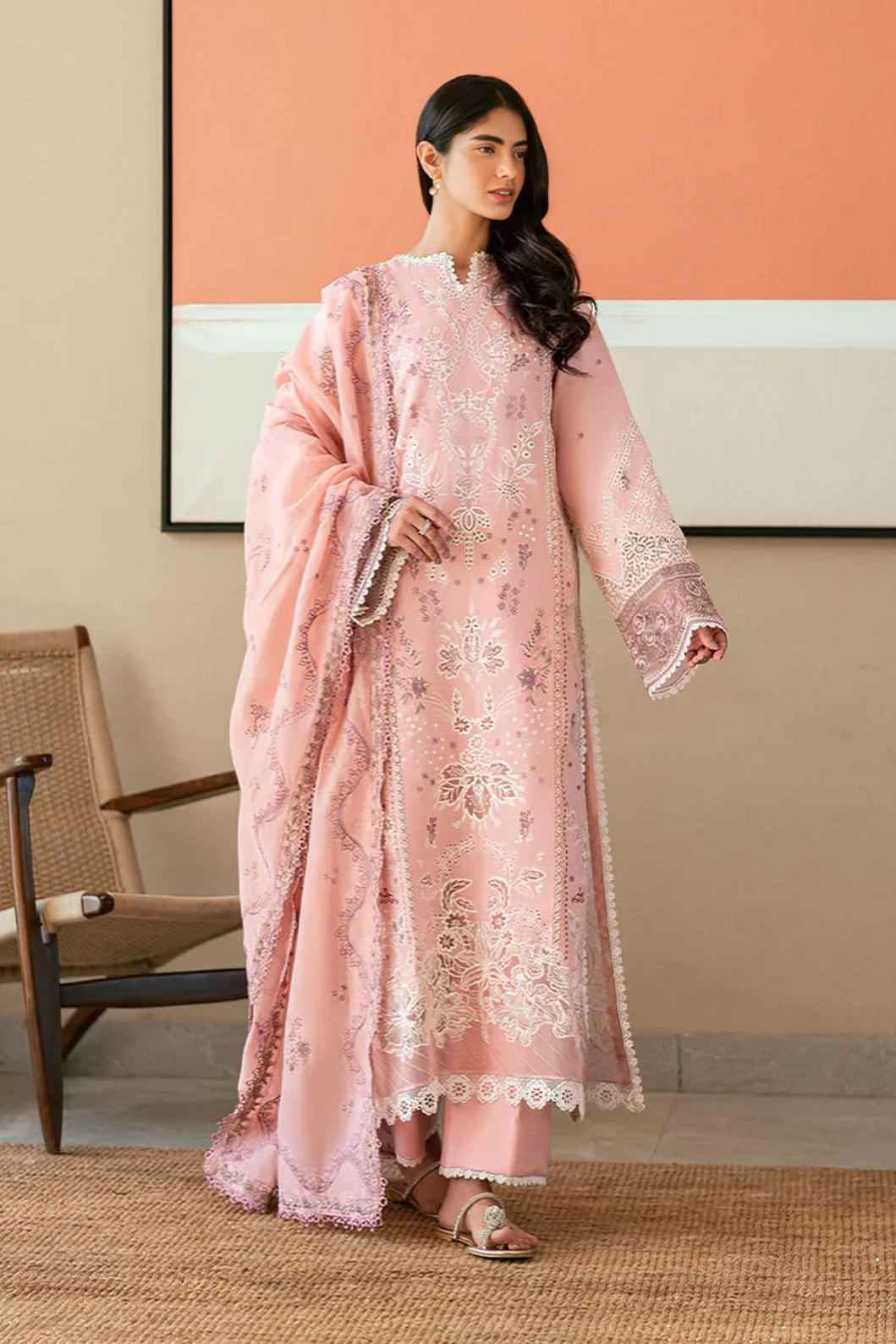 FLORENT - 3PC LAWN EMBROIDERED SHIRT WITH COTTON NET EMBROIDERED DUPATTA AND TROUSER - HZG2295