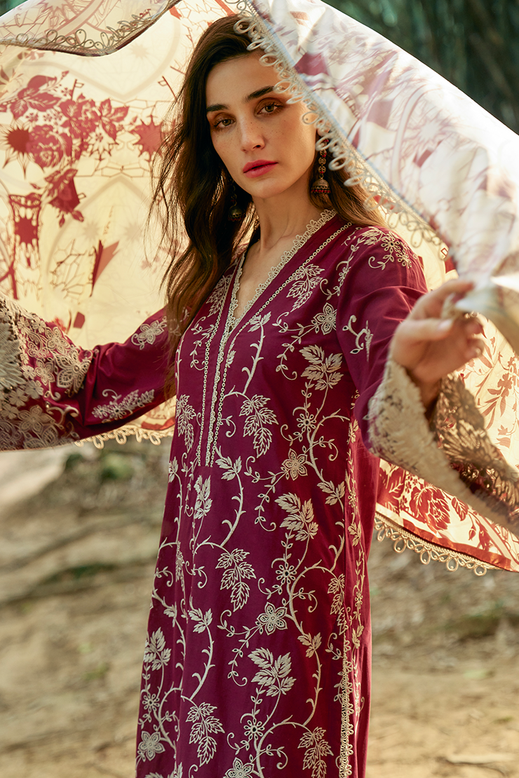 IMAGE - 3PC LAWN EMBROIDERED SHIRT WITH MANAAR PRINTED DUPATTA AND TROUSER - HZG2115
